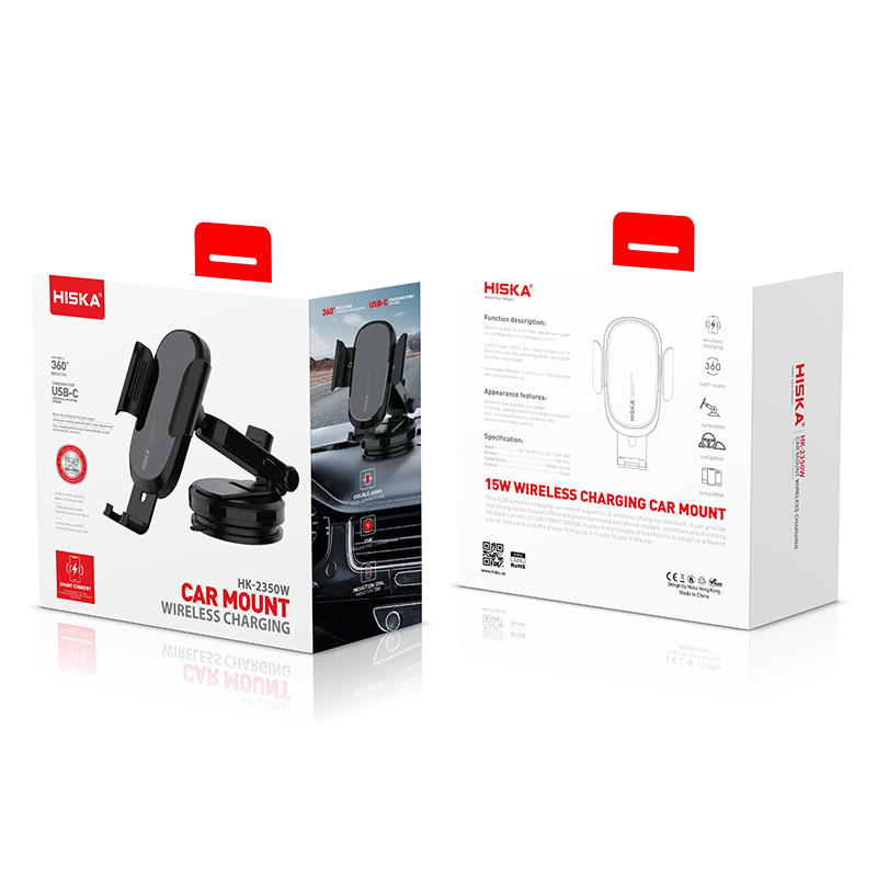 پایه نگهدارنده موبایل HK-2350W با قابلیت نصب روی داشبورد خودرو علاوه بر نگهداشتن گوشی، قابلیت شارژ وایرلس گوشی های مجهز به فناوری شارژ بیسیم را دارا می باشد. این پایه به وسیله کابلی که داخل بسته بندی آن قرار دارد به خروجی برق usb خودرو شما متصل شده و انرژی مورد نیاز برای شارژ گوشی را فراهم می نماید. این محصول با پشتیبانی از تکنولوژیQuick charge قادر است به صورت سریع گوشی موبایل شمارا به صورت بی سیم شارژ کند. پایه نگهدارنده موبایل HK-2350W بسیار شیک و زیبا و با پلاستیک ABS با کیفیت می باشد و قابلیت چرخش 360 درجه را دارد که میتوانید به میزانی که نیاز دارید آنرا چرخش دهید.